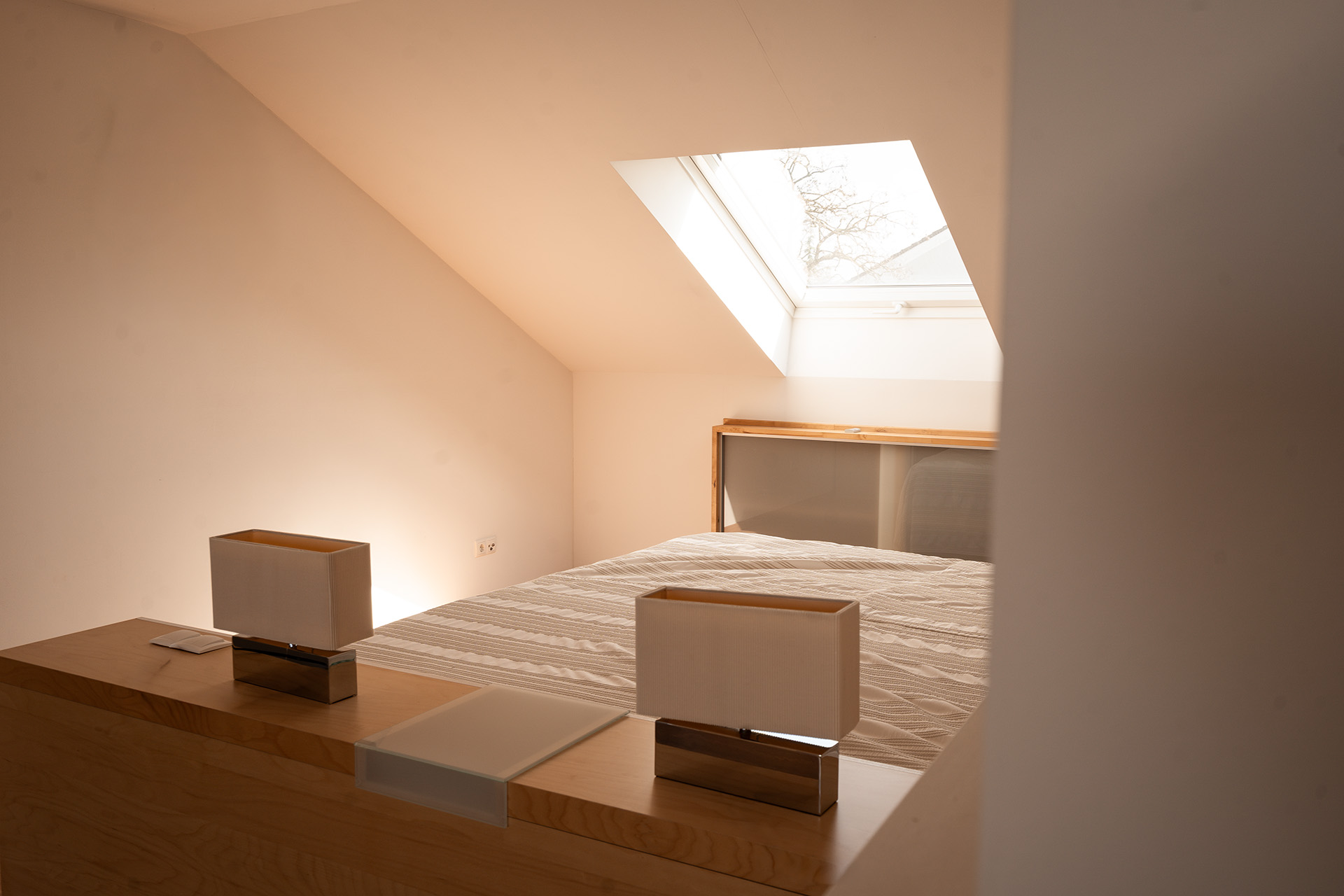 Die dritte Ebene mit ca. 51,4 m² Wohnfläche führt das architektonische Konzept konsequent fort. Im Mittelpunkt steht ein großzügiges Studio, das vielseitige Nutzungsmöglichkeiten bietet – ob als Arbeitsbereich, Kreativraum oder privater Rückzugsort. Ein angrenzendes Duschbad macht diese Ebene zu einem eigenständigen und vollwertigen Wohnbereich und unterstreicht den hochwertigen Charakter der Immobilie.