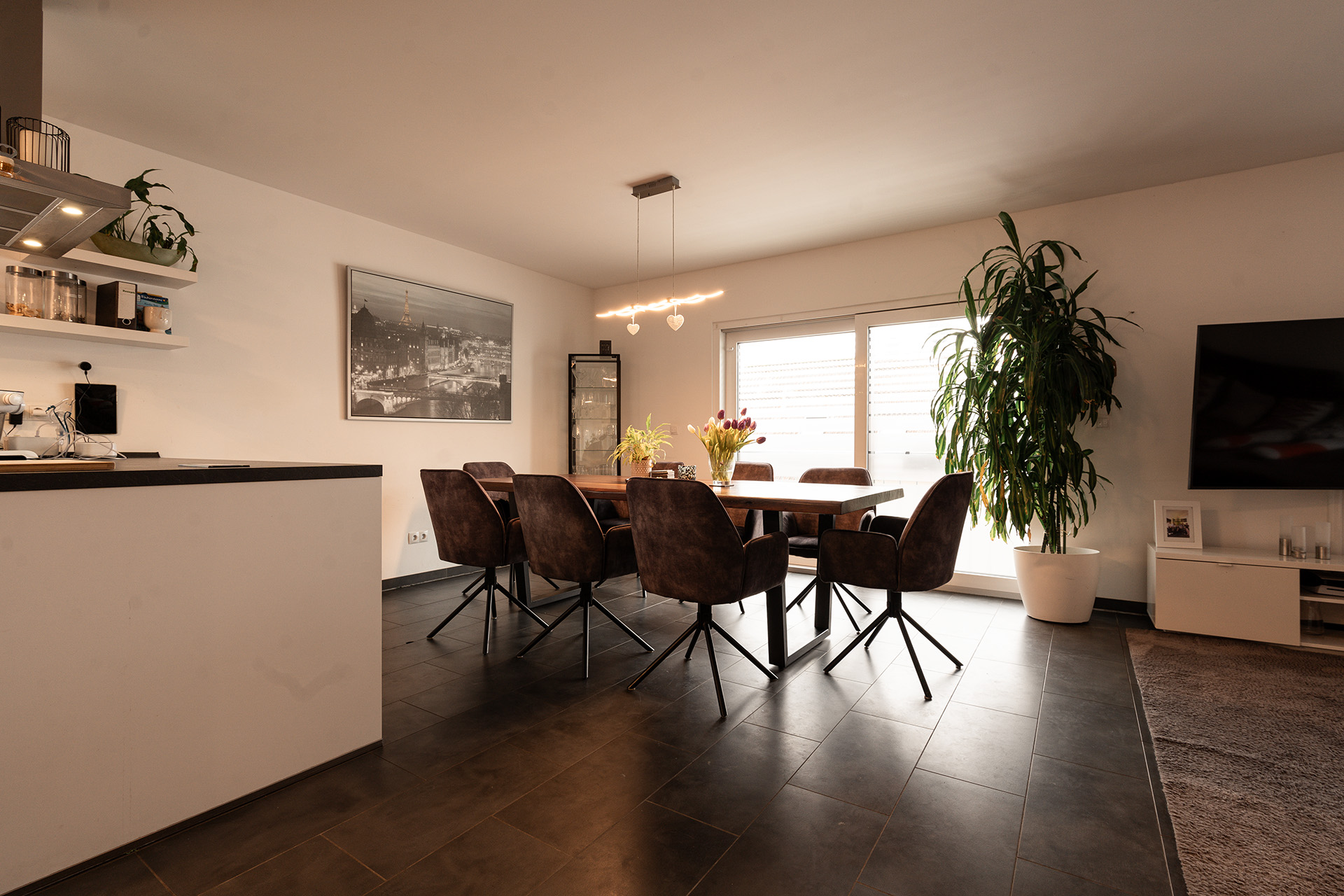 Das Haus besticht durch seine zeitgemäße Architektur, helle und lichtdurchflutete Räume sowie eine hohe Energieeffizienz im KfW-55-Standard. Große, abschließbare Fensterflächen mit Kindersicherung schaffen ein angenehmes Wohnambiente. In allen Wohnbereichen sorgt eine durchgängige Fußbodenheizung für hohen Wohnkomfort und ein gleichmäßiges Raumklima.